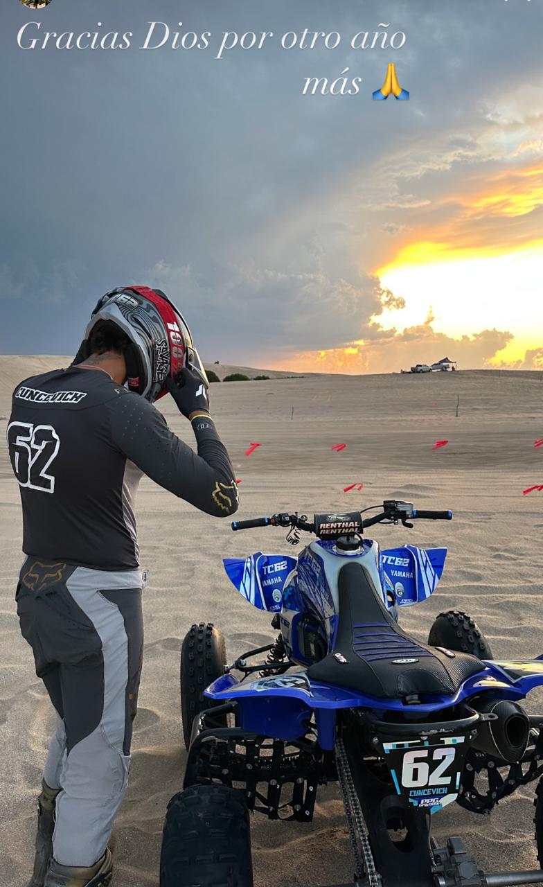 En una carrera donde compiten más de 500 cuatriciclos ,y un público de más de 5000 personas, desde los 5 años corre en cuatriciclo , la pasión que el siente por estos fierros , no lo dejaron bajar nunca los brazos , aún después de un accidente en el año 2023 ,donde peleo entre la vida y la muerte ,
