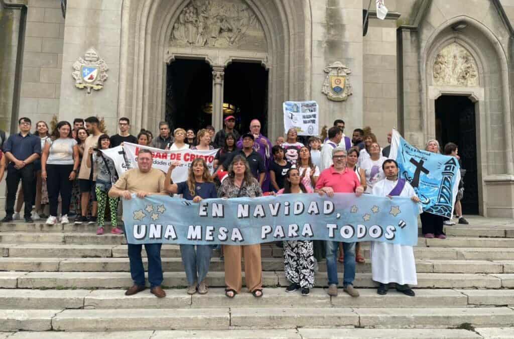 La explanada de la iglesia Catedral fue escenario de un festejo navideño organizado por la Mesa de Diálogo por la Dignidad de las Periferias del Obispado de Mar del Plata, destinado especialmente a personas en situación de vulnerabilidad y a quienes viven en la calle.