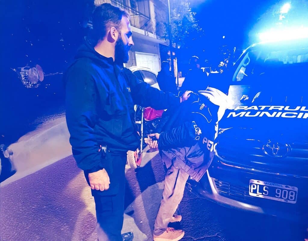 Al impartir la voz de alto, el rodado detuvo momentáneamente su marcha, instancia en la que se intentó proceder a la identificación y control de la documentación. Sin embargo, el conductor intentó darse a la fuga, impactando contra una puerta del móvil municipal y colisionando posteriormente contra un vehículo estacionado.